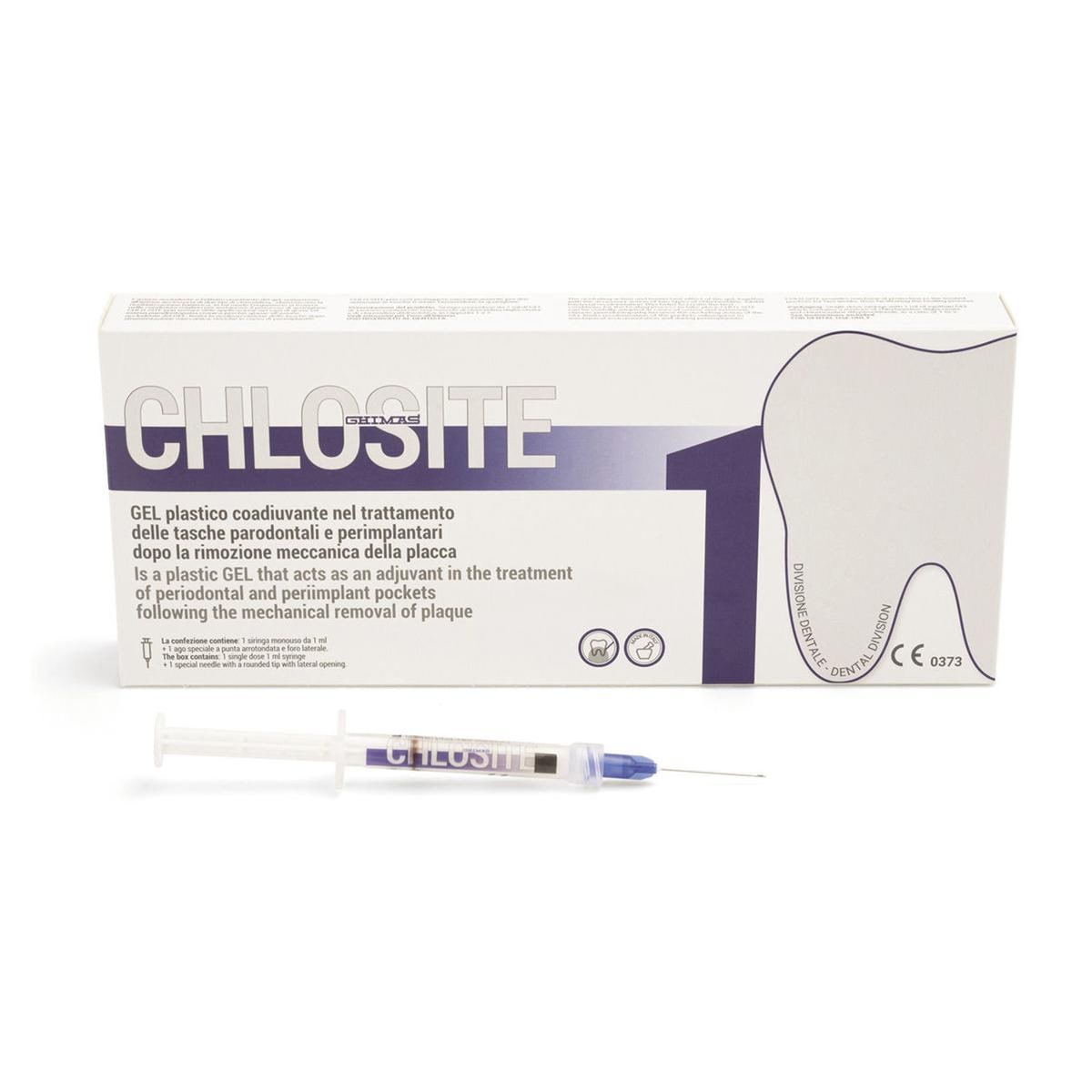 Dispositivo Medico di classe III - ChloSite è l’innovativo gel di XANTANO con BI-CLOREXIDINA progettato per ottimizzare la cura parodontale. ChloSite ha un’azione occludente e mucoadesiva, permane nella tasca aderendo ai tessuti in un progressivo processo di inibizione di 20+ giorni. Questa caratteristica svolge un ruolo chiave nel preservare l’igiene instaurata dall’operatore, amplificando i benefici del trattamento attraverso la significativa riduzione della sopravvivenza batterica. Ciò si traduce in un ambiente ottimale che favorisce efficacemente il processo di guarigione. Il prodotto è pronto all'uso e disponibile in due formati: 0,25 ml (monouso per 1-2 tasche) e 1 ml (per più tasche). Utilizzabile anche dagli igienisti, particolarmente indicato per i seguenti casi: gengiviti (in pazienti parodontali stabili o con pseudo tasche); parodontite (stadio I, II, III, IV); perimplantiti; mucositi; pre-chirurgia parodontale. È inoltre utile in implantologia protesica, applicando il prodotto all'interno della cavità dell'impianto prima di avvitare l'abutment, le viti di guarigione o le viti tappo. Confezione sterile monouso.