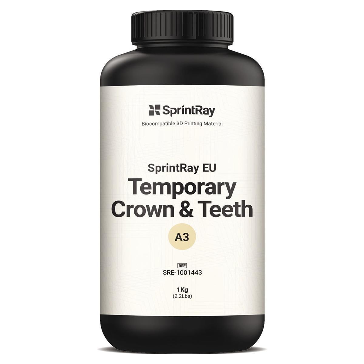 La serie di resine SprintRay EU Crown and Teeth sono resine biocompatibili per corone e ponti provvisori, nonché per uso temporaneo nella regione anteriore. Il materiale SprintRay EU Temporary Crown & Teeth è eccellente anche per i provvisori a lungo termine grazie alle sue proprietà del materiale.